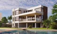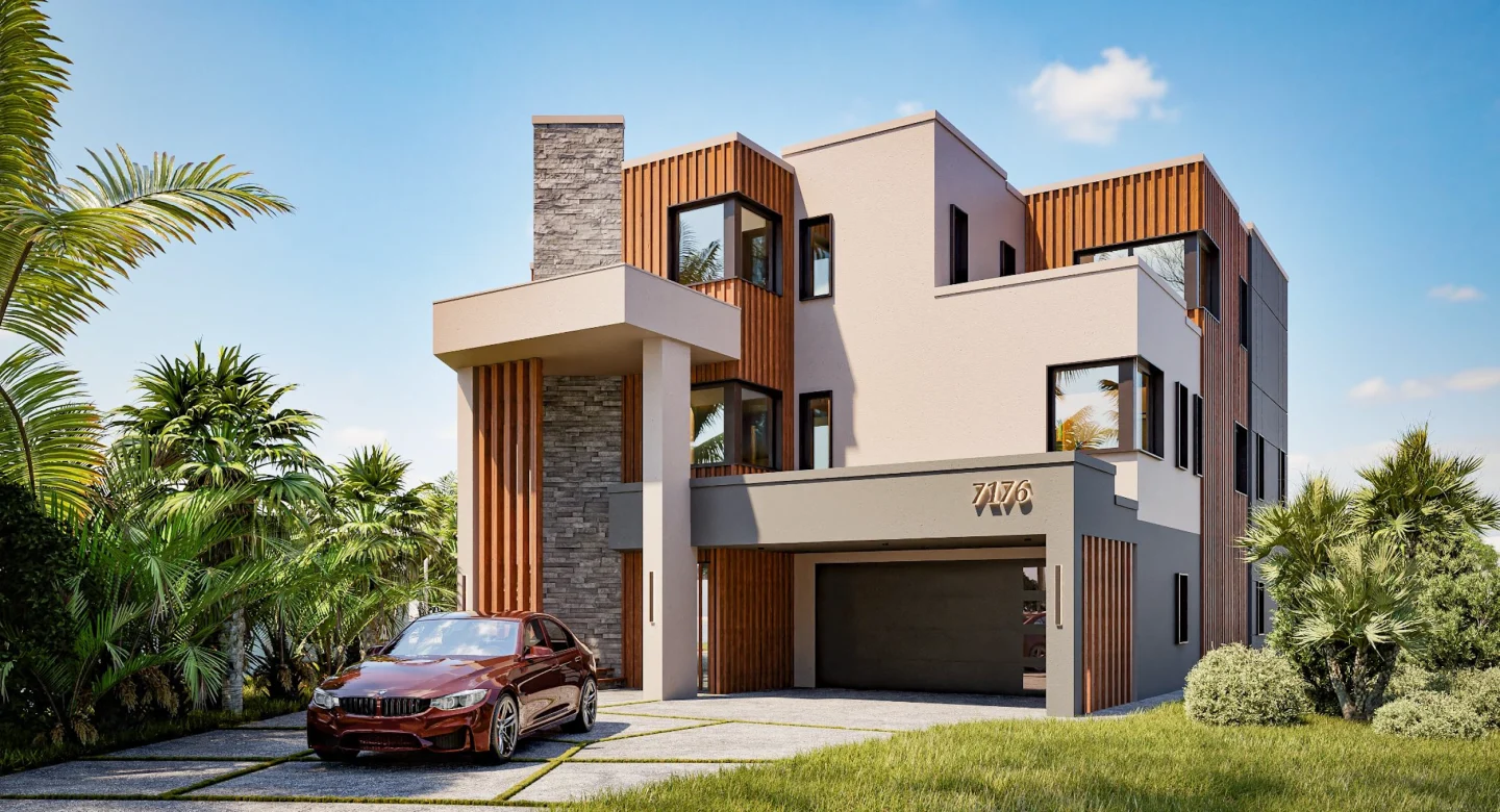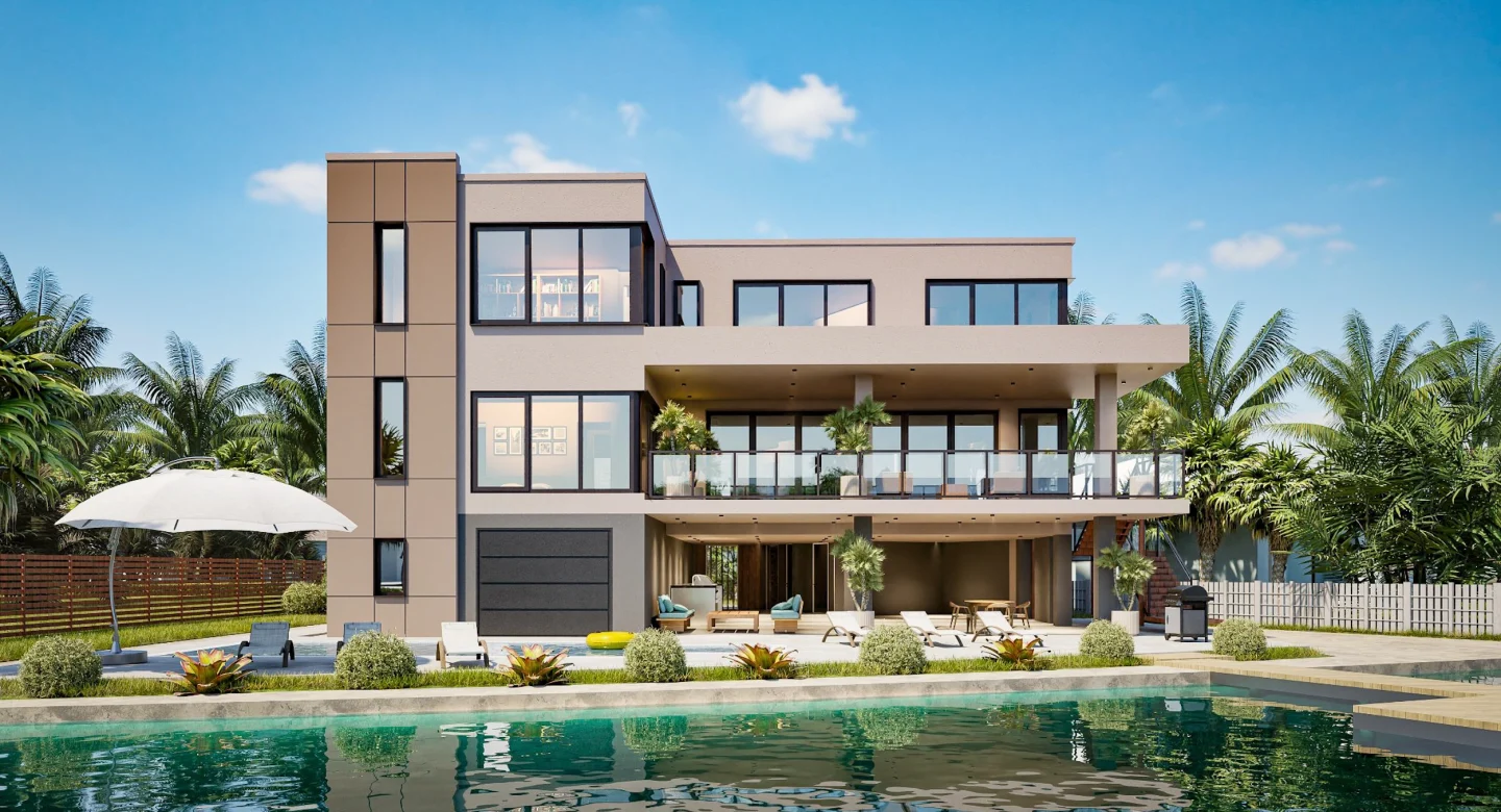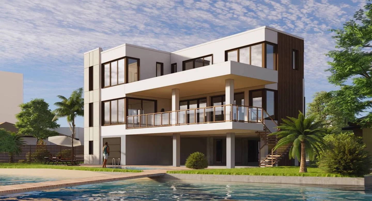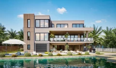 This modern European design home on Shore Drive spans 4.428 sq. ft., with a total area of 8.008 sq. ft.